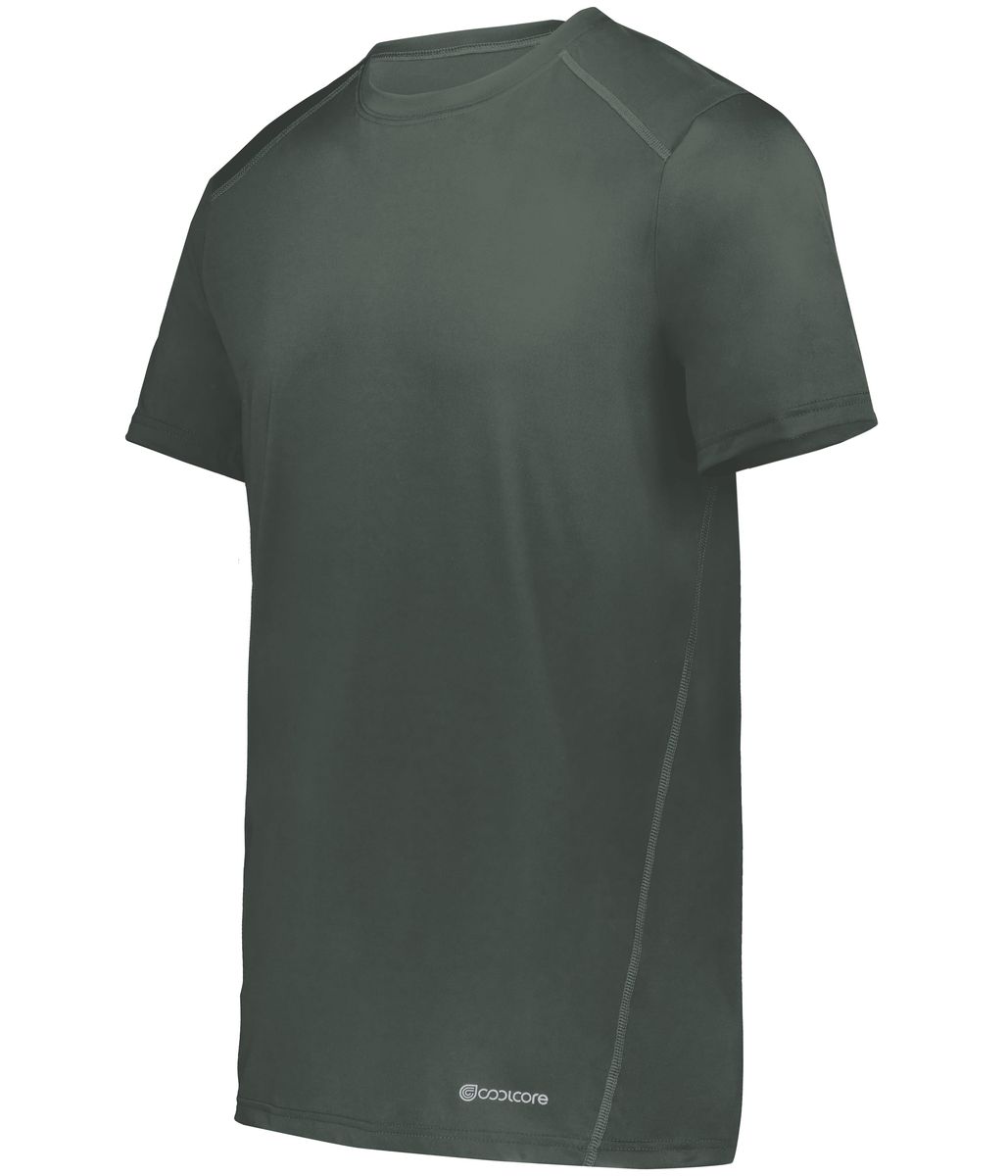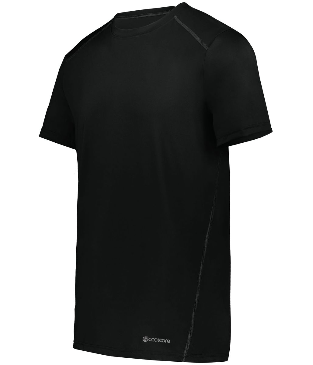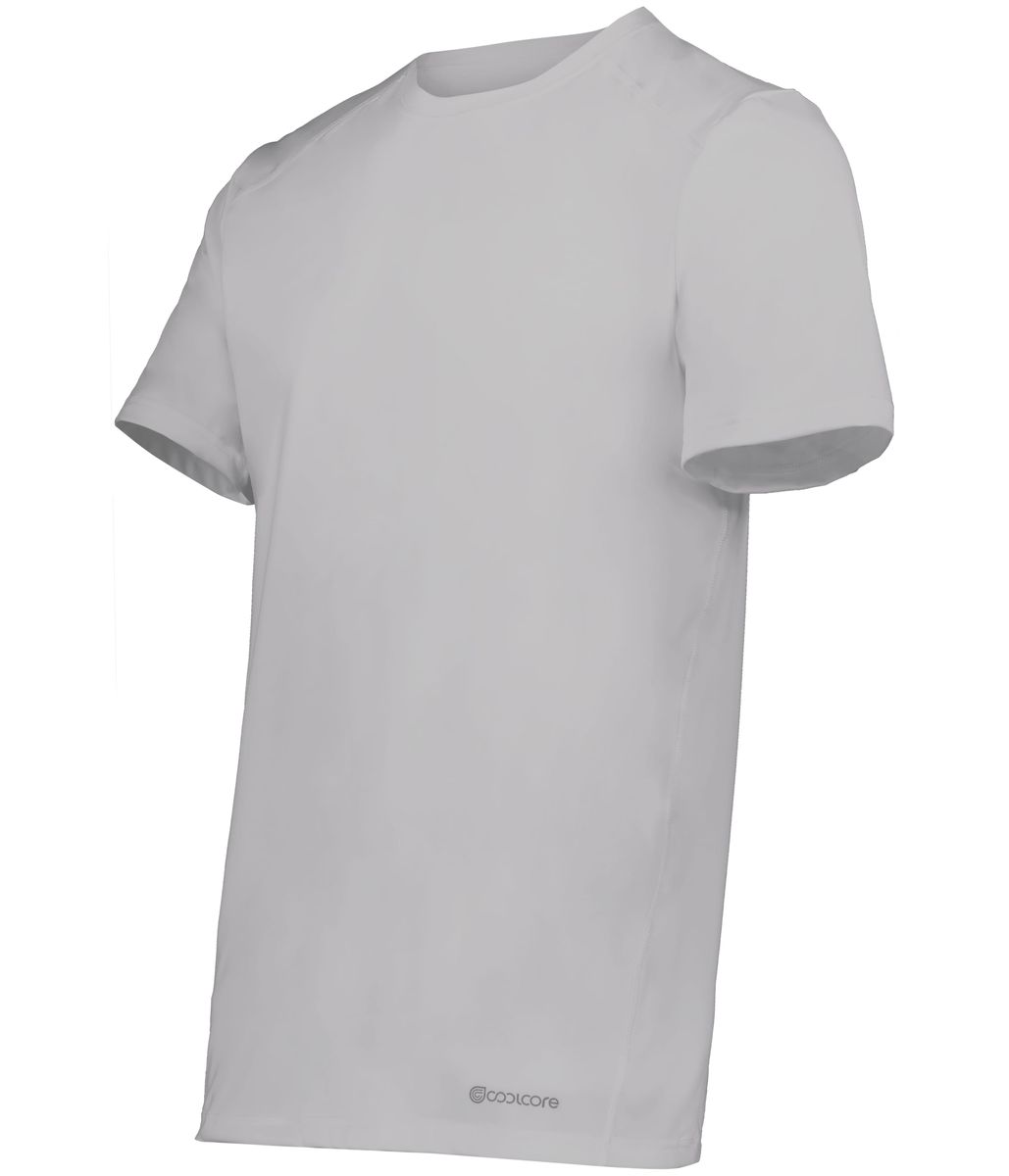 * 88% polyester/12% elastane Coolcore® fabric with color secure® technology that helps prevent dye migration * 4-way stretch properties allow for increased mobility * Garment protects against the sun with 50+ UPF * Wicks moisture * Tag-free label * Crew neck * Set-in sleeves with rolled forward shoulder seam