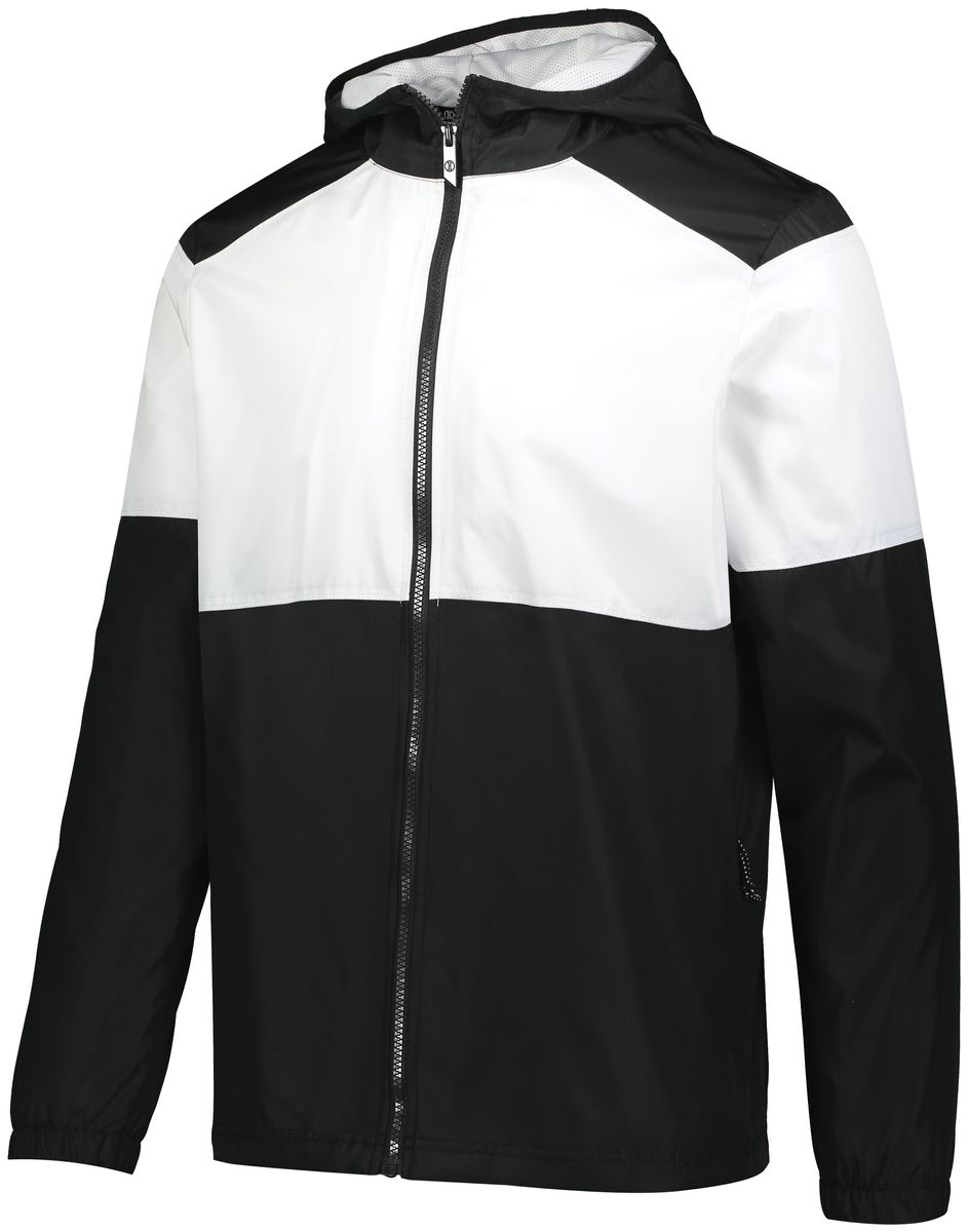 * Micron™ polyester is a lightweight, wind/water-resistant fabric * 100% polyester micromesh lining * Embossed inserts for subtle textured pattern * Woven label * Front zipper * 3-piece hood with spandex binding * Set-in sleeves * Front zippered pockets * Elastic cuffs