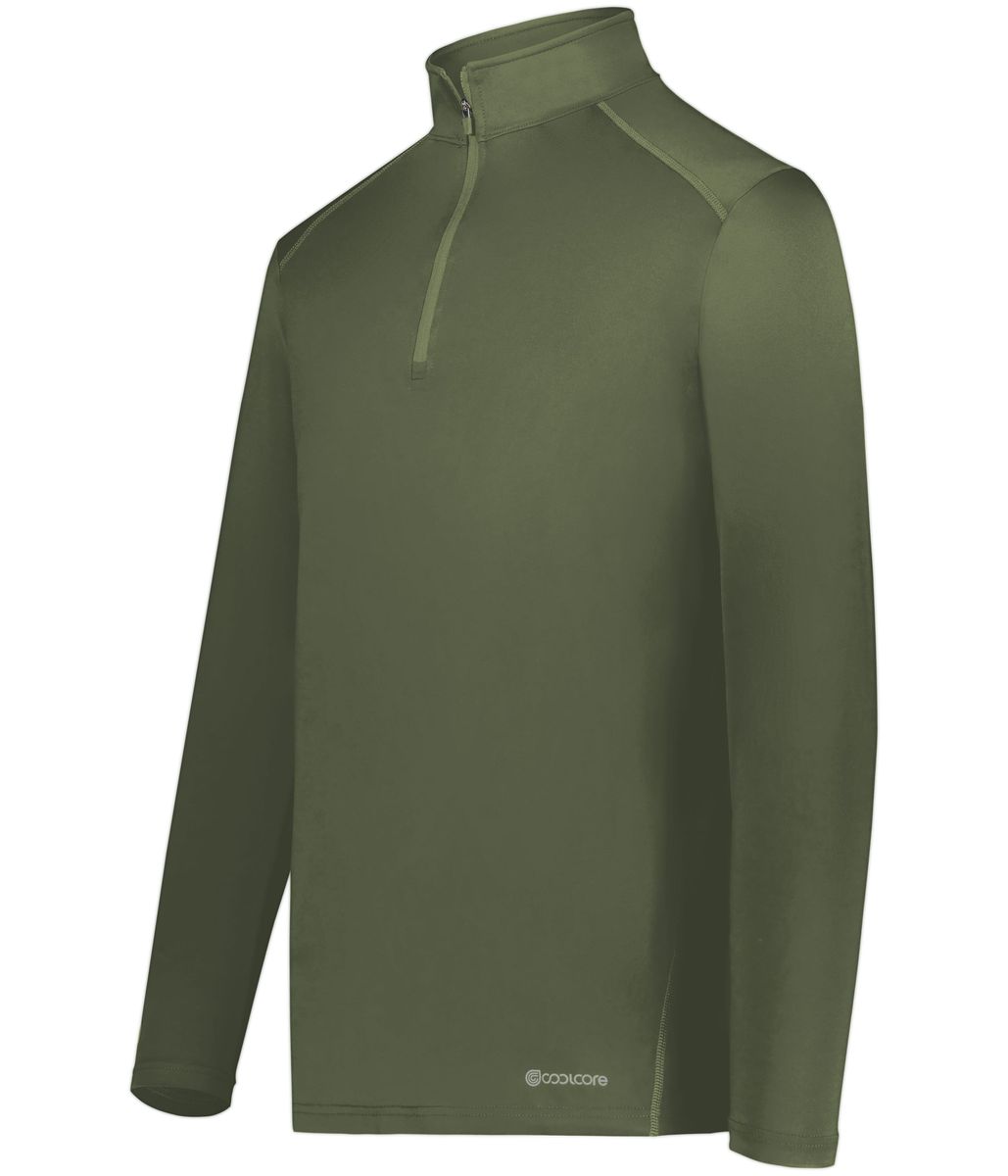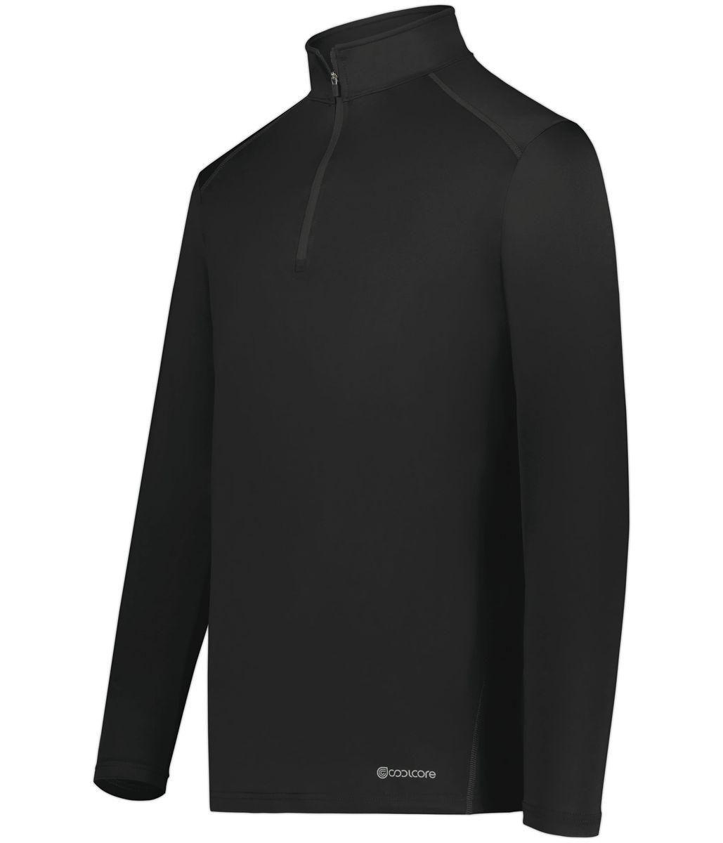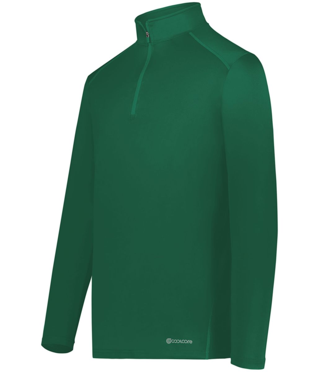 * 88% polyester/12% elastane Coolcore® fabric with color secure® technology that helps prevent dye migration * Coolcore® fabric is engineered to distribute moisture quickly throughout the garment. As the moisture spreads it dries faster and keeps you cool and comfortable, and has UPF 50 sun protection. * 4-way stretch properties allow for increased mobility * Garment protects against the sun with 50+ UPF * Wicks moisture * Tag-free label * Quarter zip pullover style * Set-in sleeves with rolled forward shoulder seam